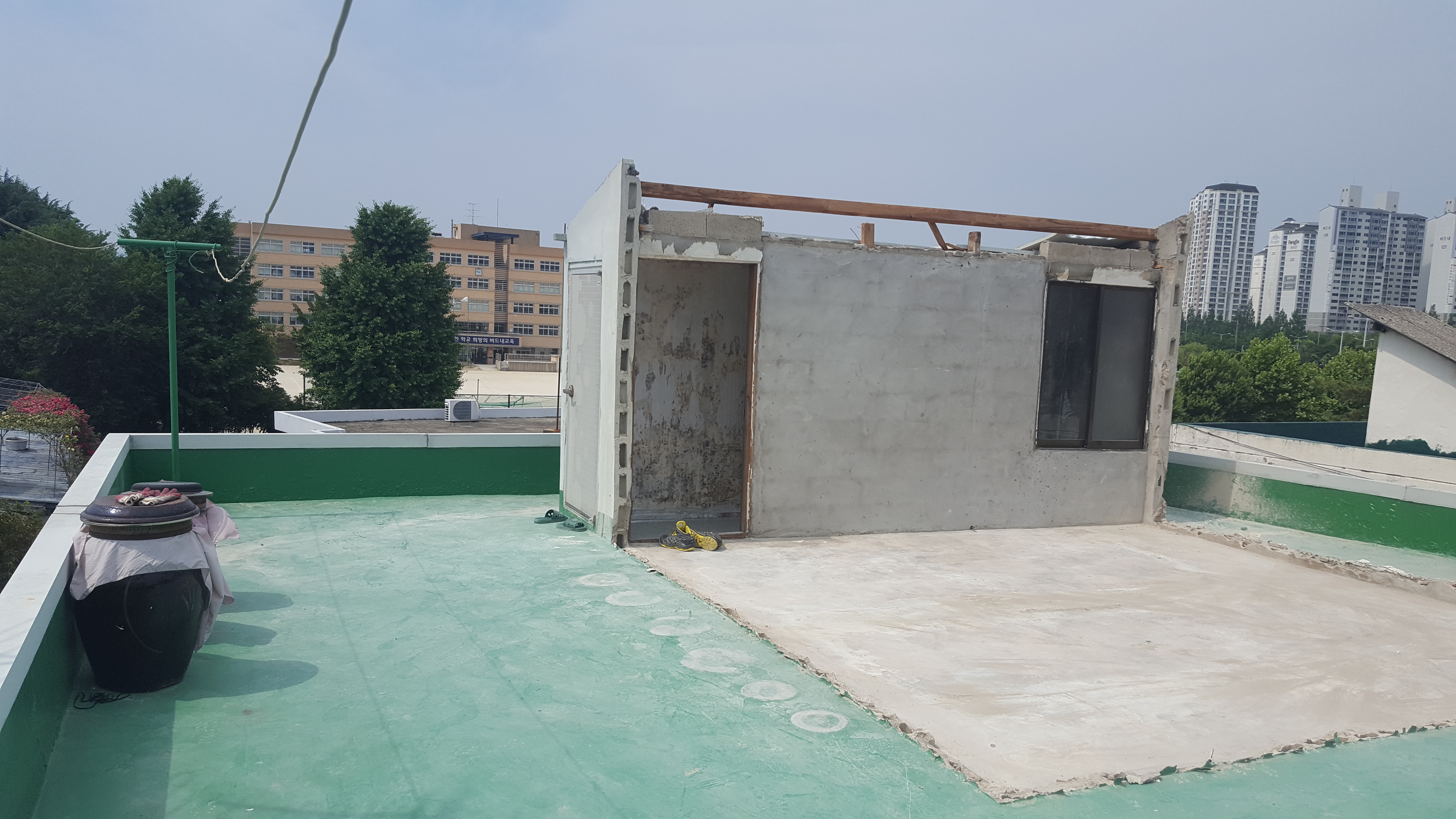 이번에 시공한 광주옥상방수 시공현장입니다. 칼라강판옥상방수 시공 전 옥상에 옥탑을 개조해서 방수에 매우 고민이 깊으셨습니다.