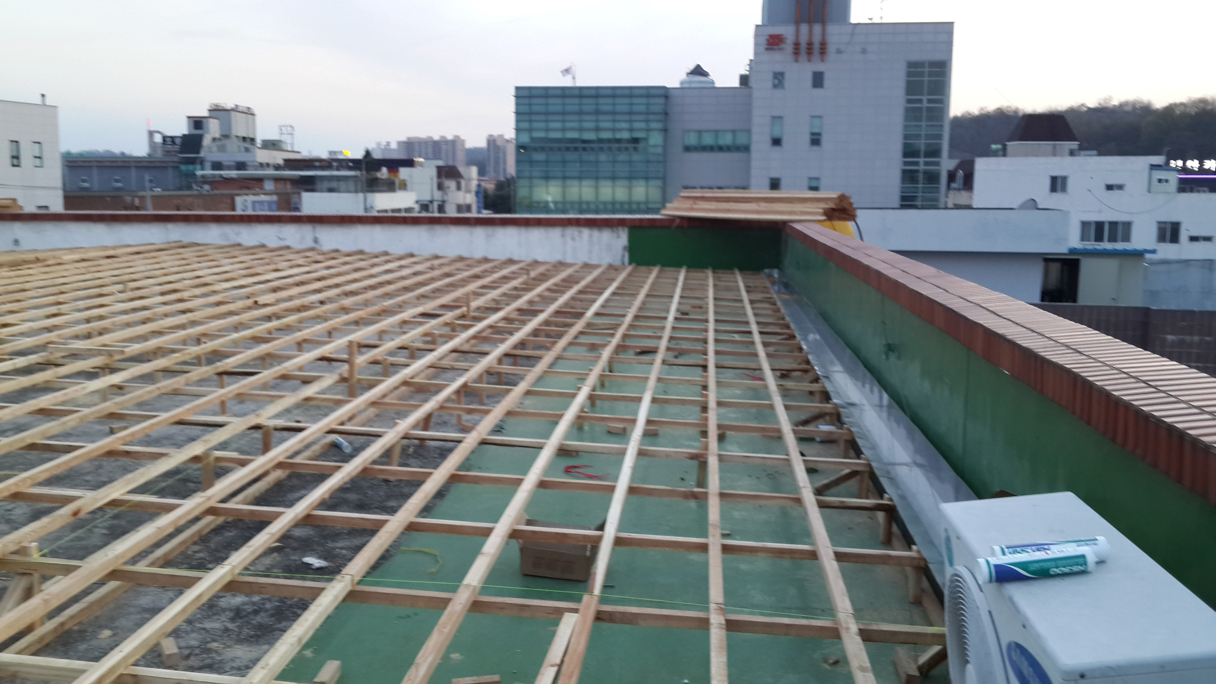 옥상방수 공사의 첫 번째 단계: 목재하지작업