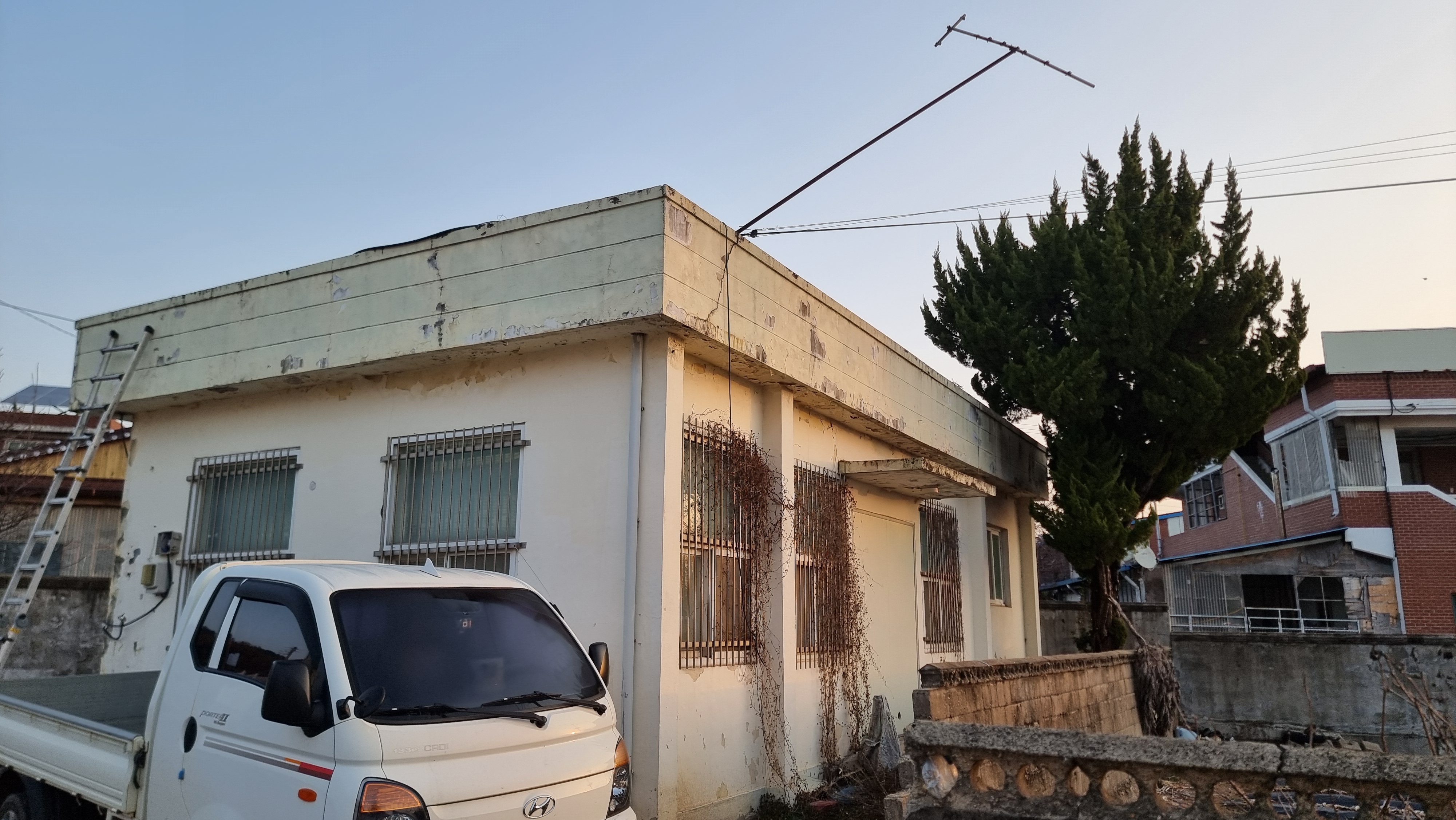 오래된 익상평지붕 주택옥상은
