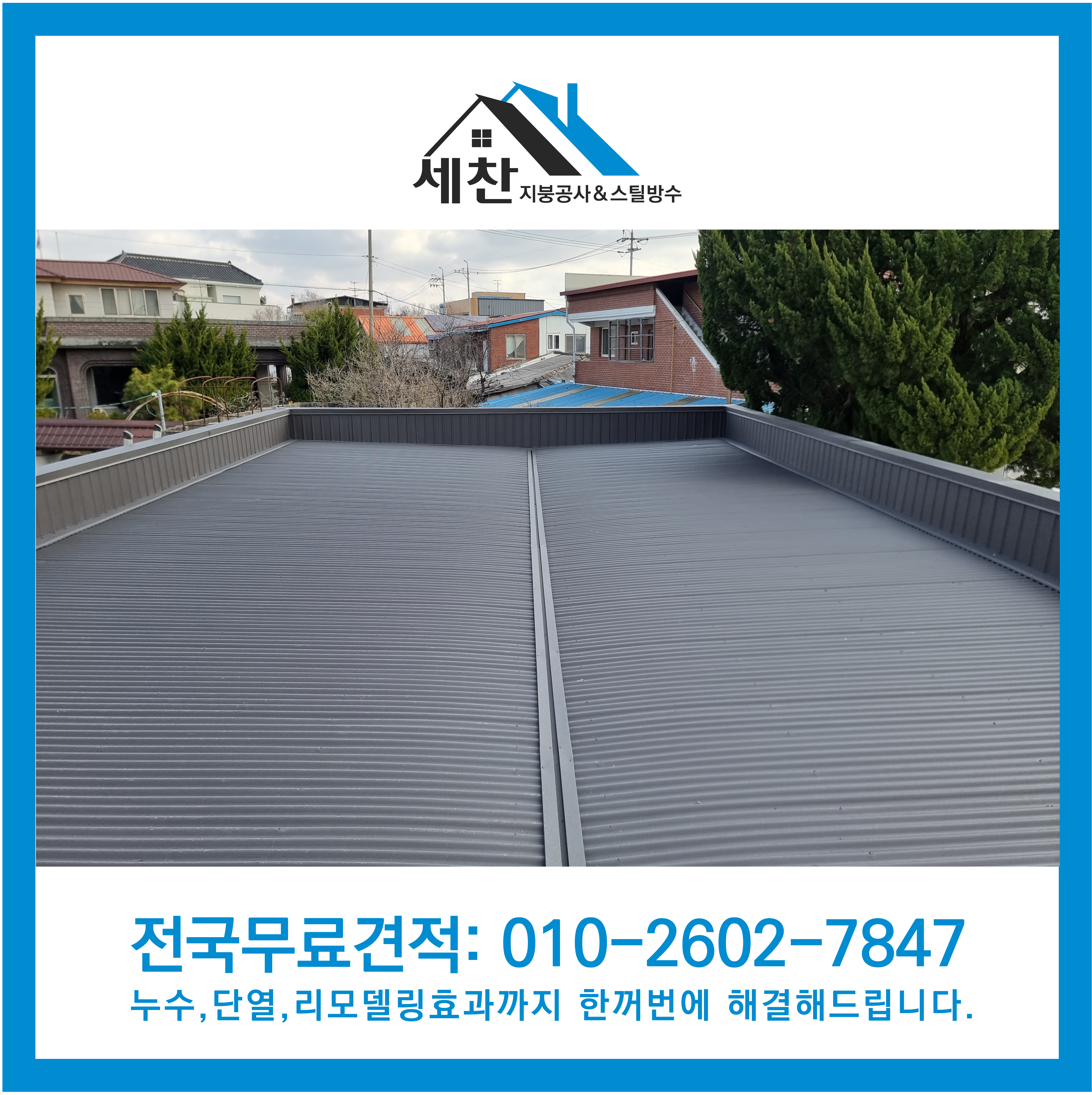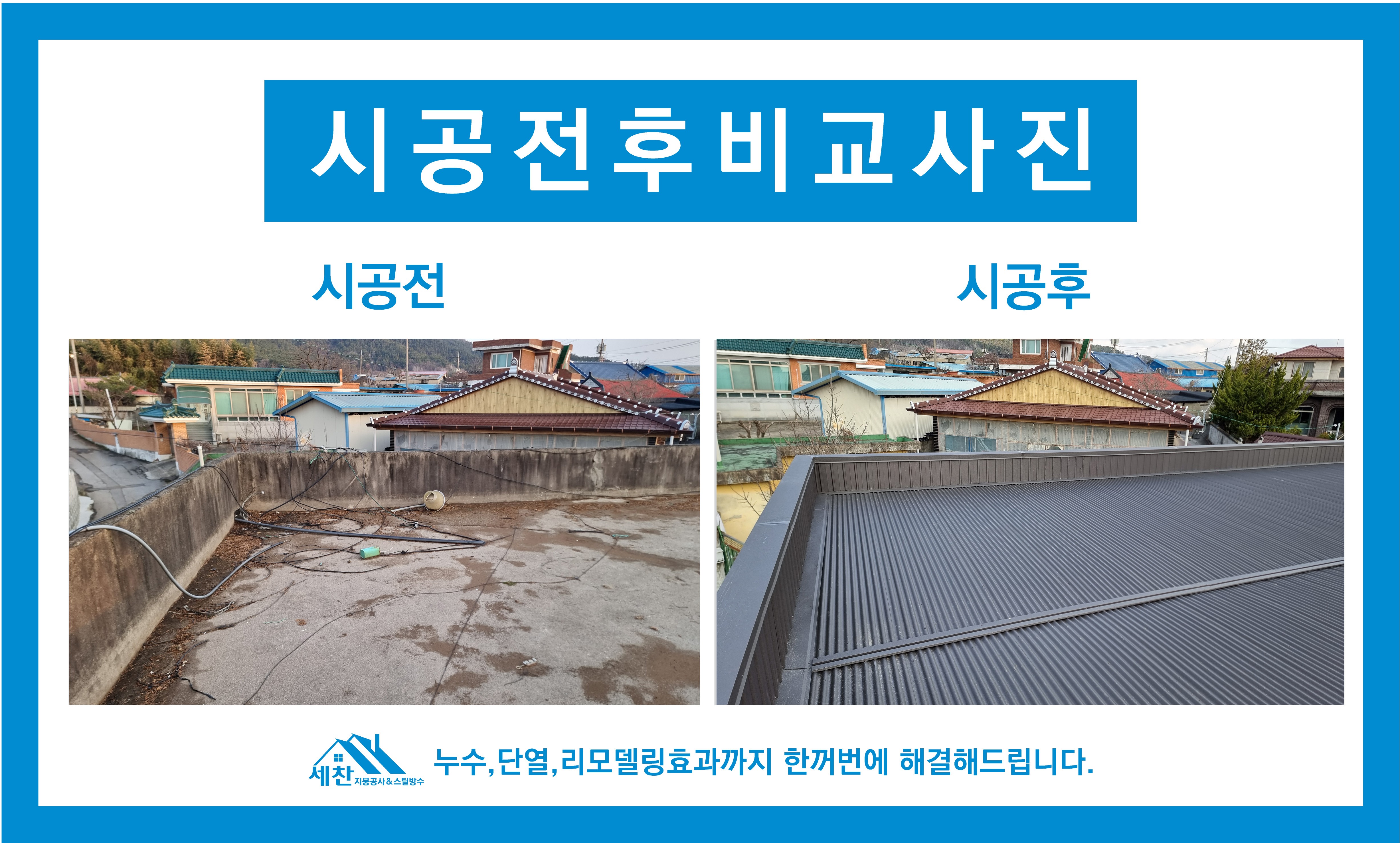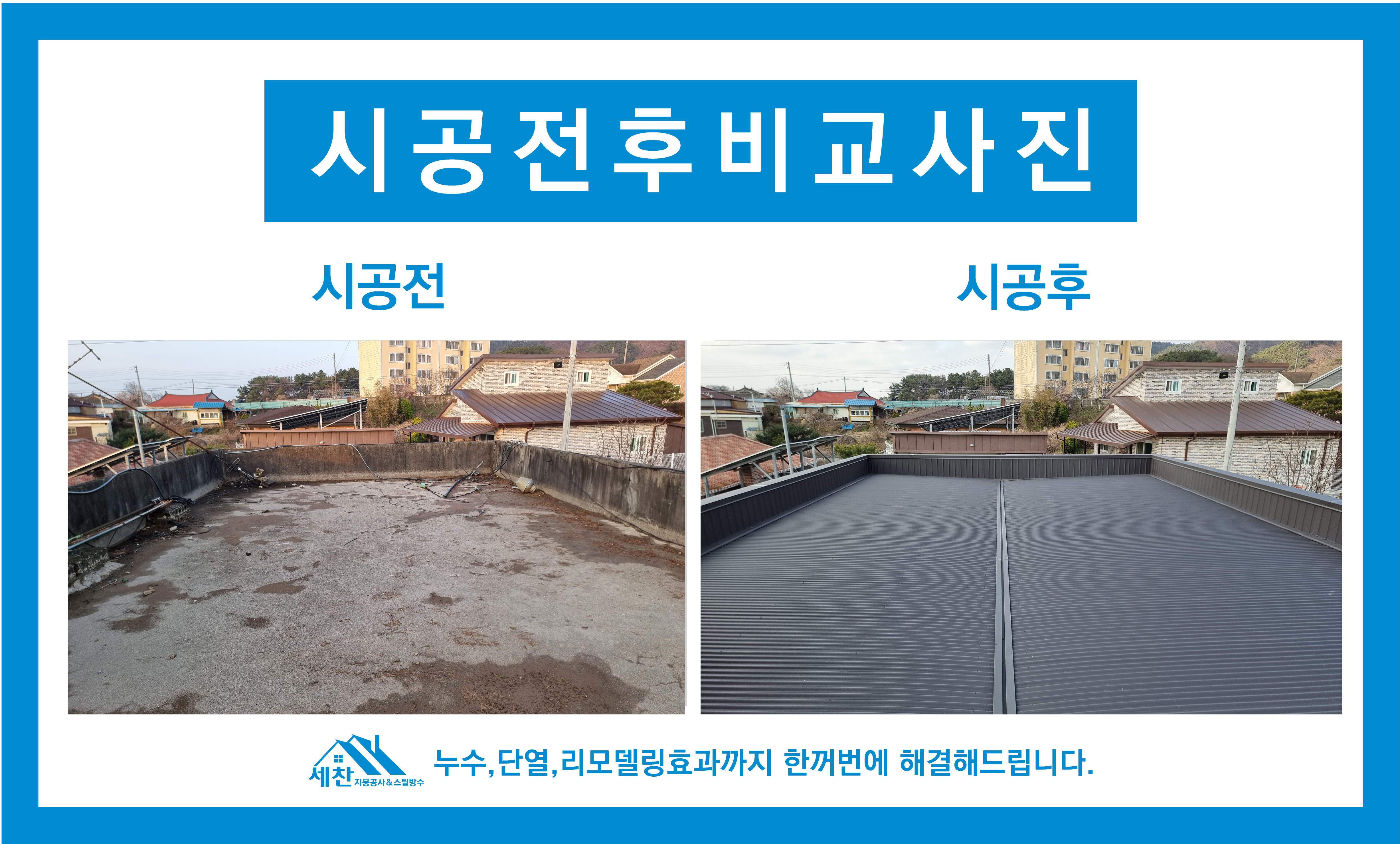 세찬지붕공사의 평지붕 옥상지붕 칼라강판 지붕공사